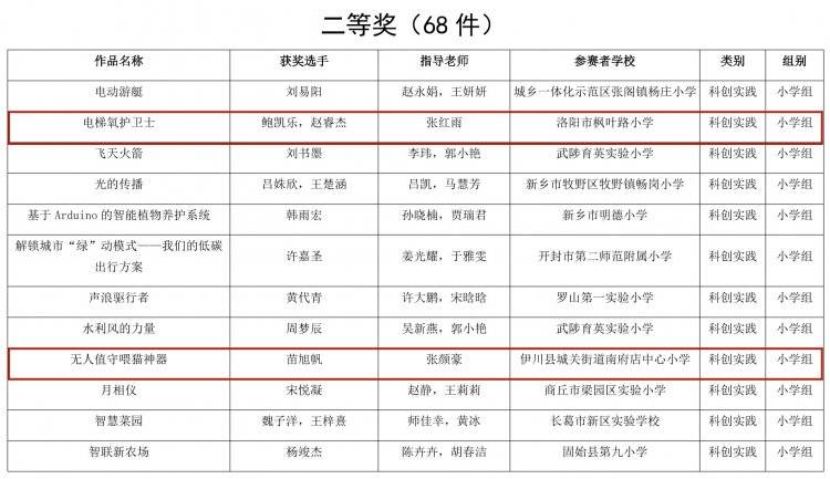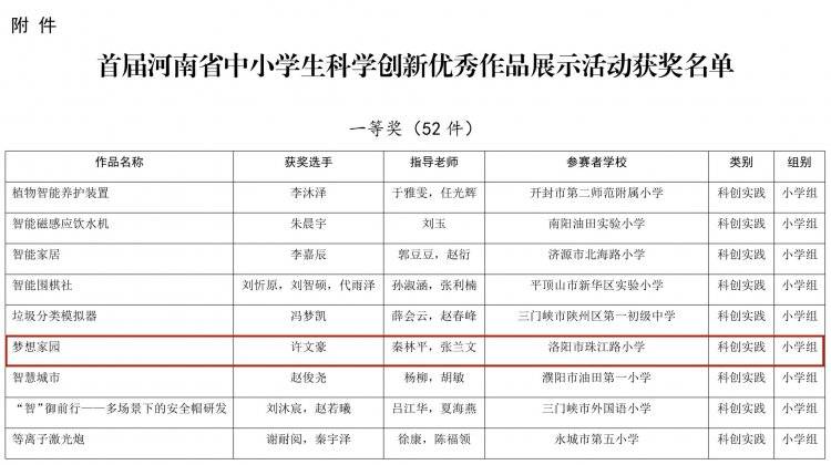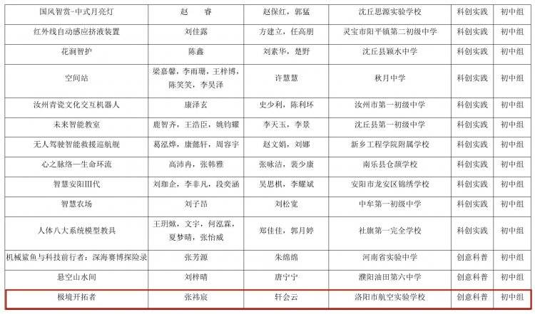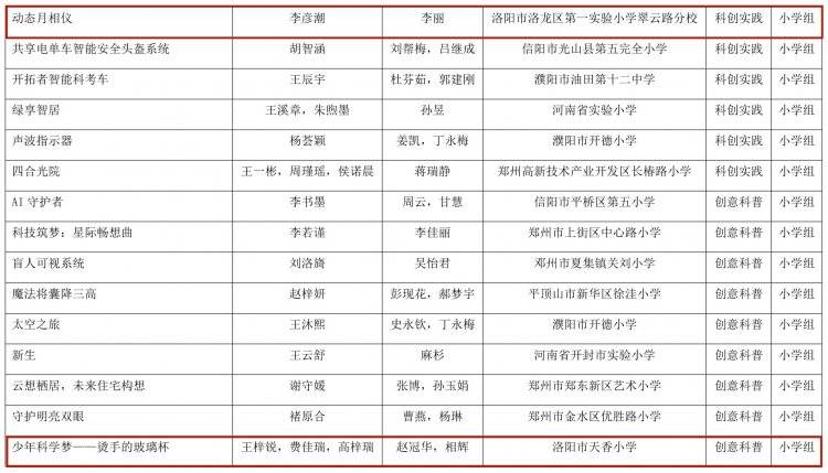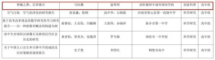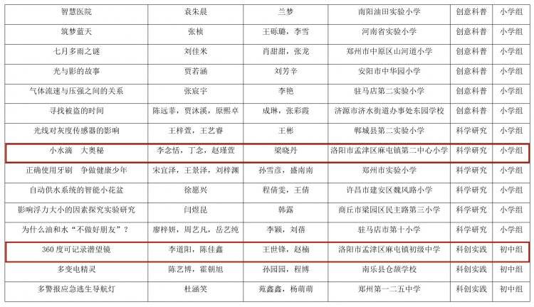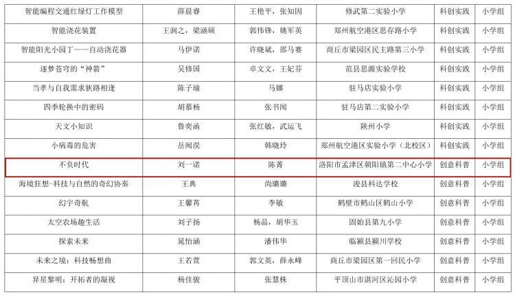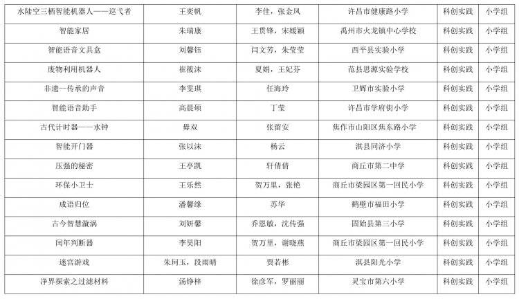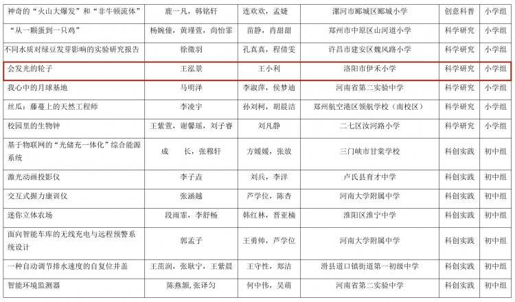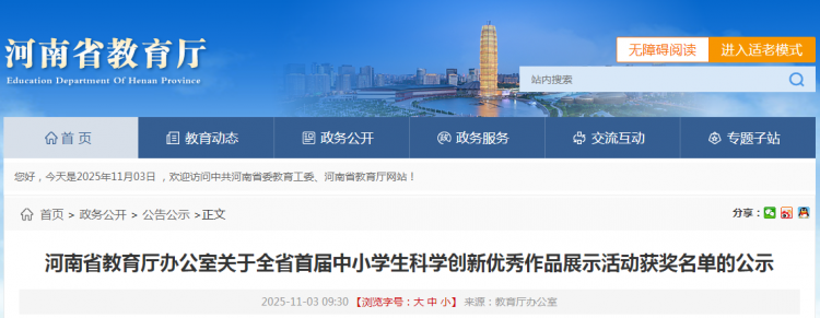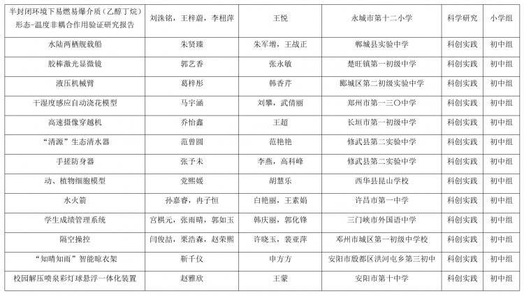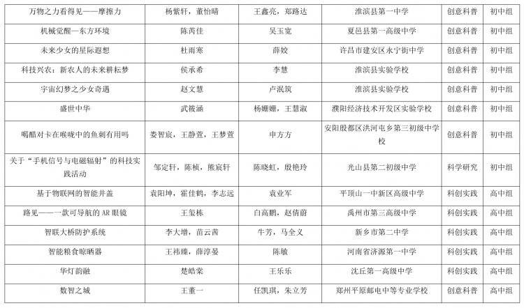 河南省教育厅办公室关于全省首届中小学生科学创新优秀作品展示活动获奖名单的公示