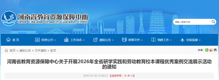 河南省教育资源保障中心关于开展2026年全省研学实践和劳动教育校本课程优秀案例交流展示活动的通知